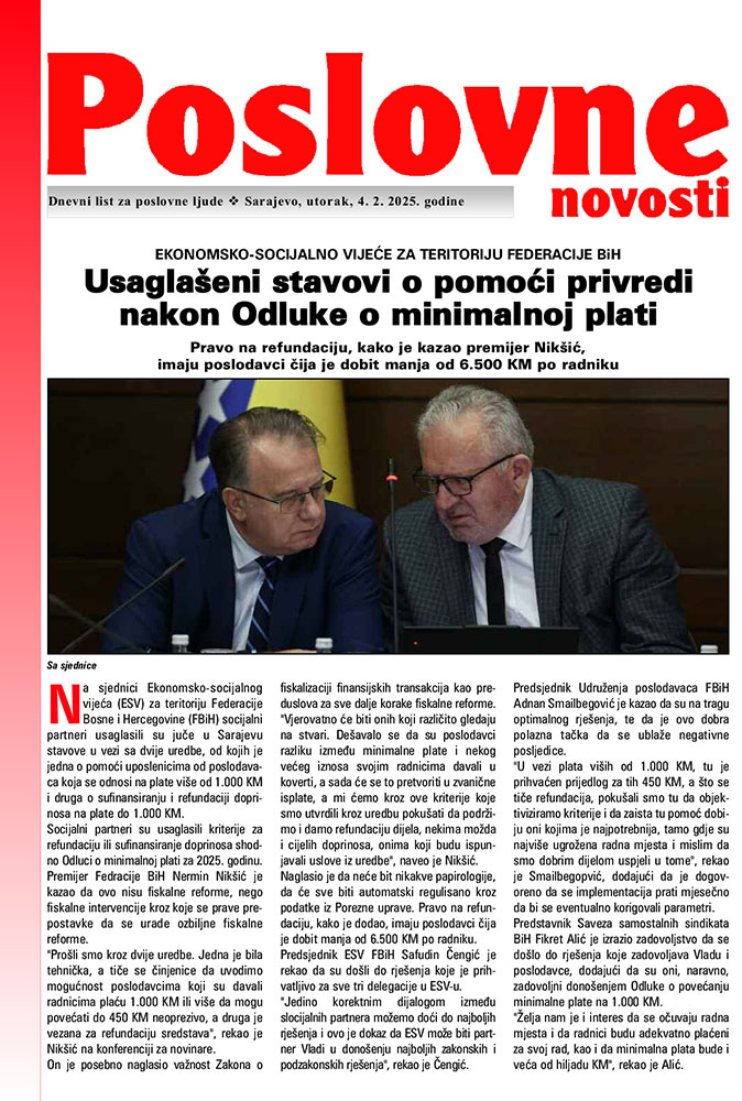 are intended for the BH audience and have been published since May 1998. Subscribers to Poslovne Novosti are banks in Bosnia and Herzegovina, universities, large and small companies, BH business communes which also have individual subscriptions. Every day, Poslovne Novosti brings its readers the latest trends, events, forecasts, interviews, analyses, stock market reports, exchange rates as well as strategic and important events from neighboring countries and the world in bosnian language.