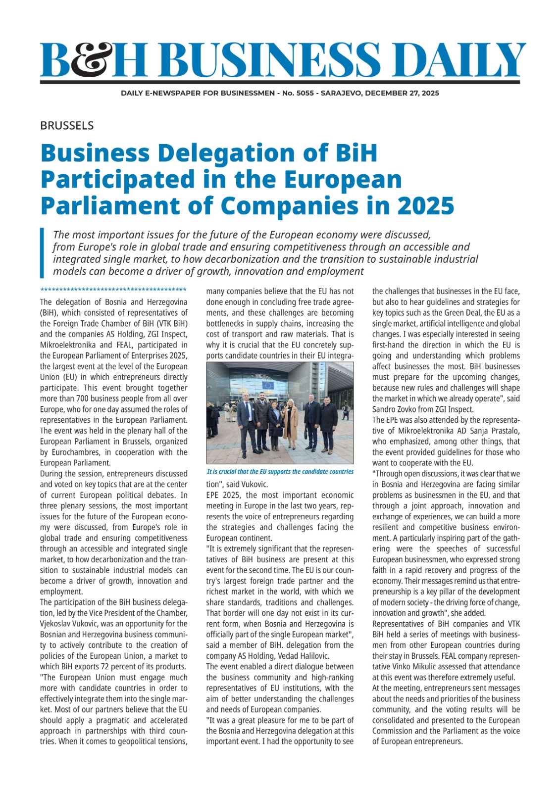 is being published since March 2006 which gives readers insight to latest events in business and economy in BiH, along with latest trends, interviews, analysis, burse reports and currency lists. B&H Business Daily also monitors all strategic events regarding business and economy of neighboring countries and region.
